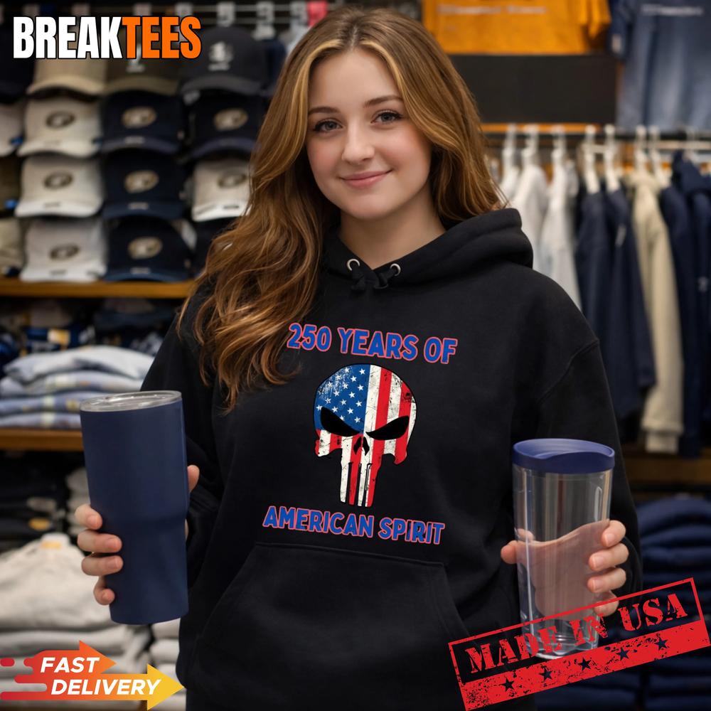 250 Years of Freedom American Spirit US Flag Punisher Skull Patriotic Hoodie