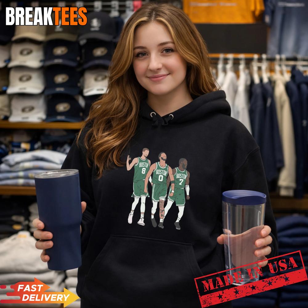 The Big 3 Boston Kristaps Porzingis Jayson Tatum and Jaylen Brown Shirt captures the essence of Boston Celtics fandom with its bold design and vibrant colors. This product is designed for die-hard fans who bleed green and are ready to support their team through every high and low of the season.