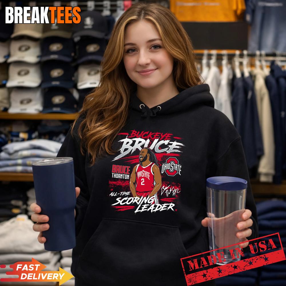 Join the ranks of proud Ohio State basketball fans with the Bruce Thornton Leading Scorer Ohio State Basketball T-Shirt. This shirt is more than just apparel; it’s a statement of loyalty and pride. Supplies are limited at BreakTees, so grab yours today and showcase your team spirit in style!