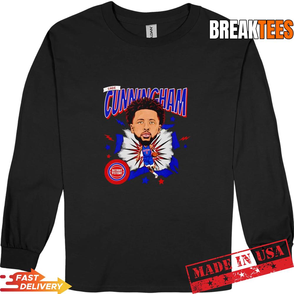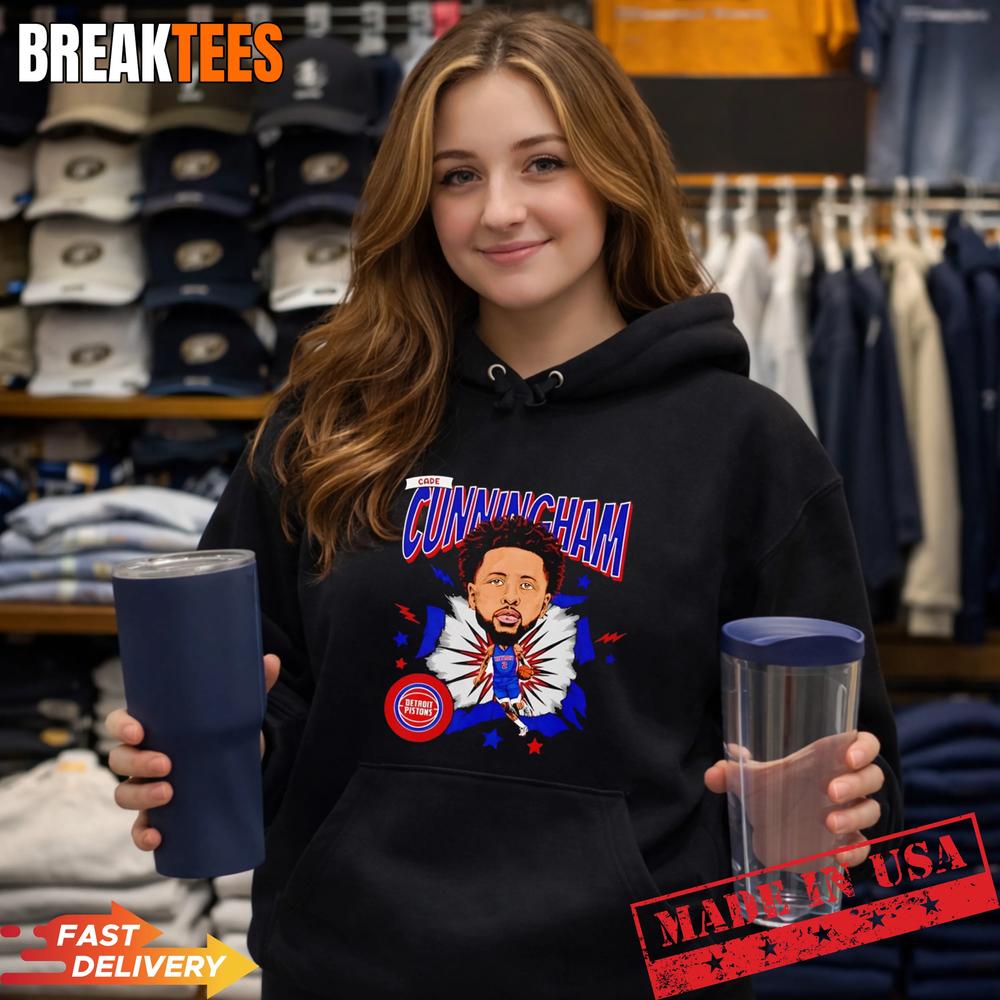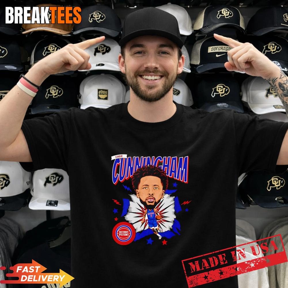 A5: This shirt features a unique caricature design of Cade Cunningham, showcasing your loyalty to the Detroit Pistons while providing a comfortable and stylish option for fans.