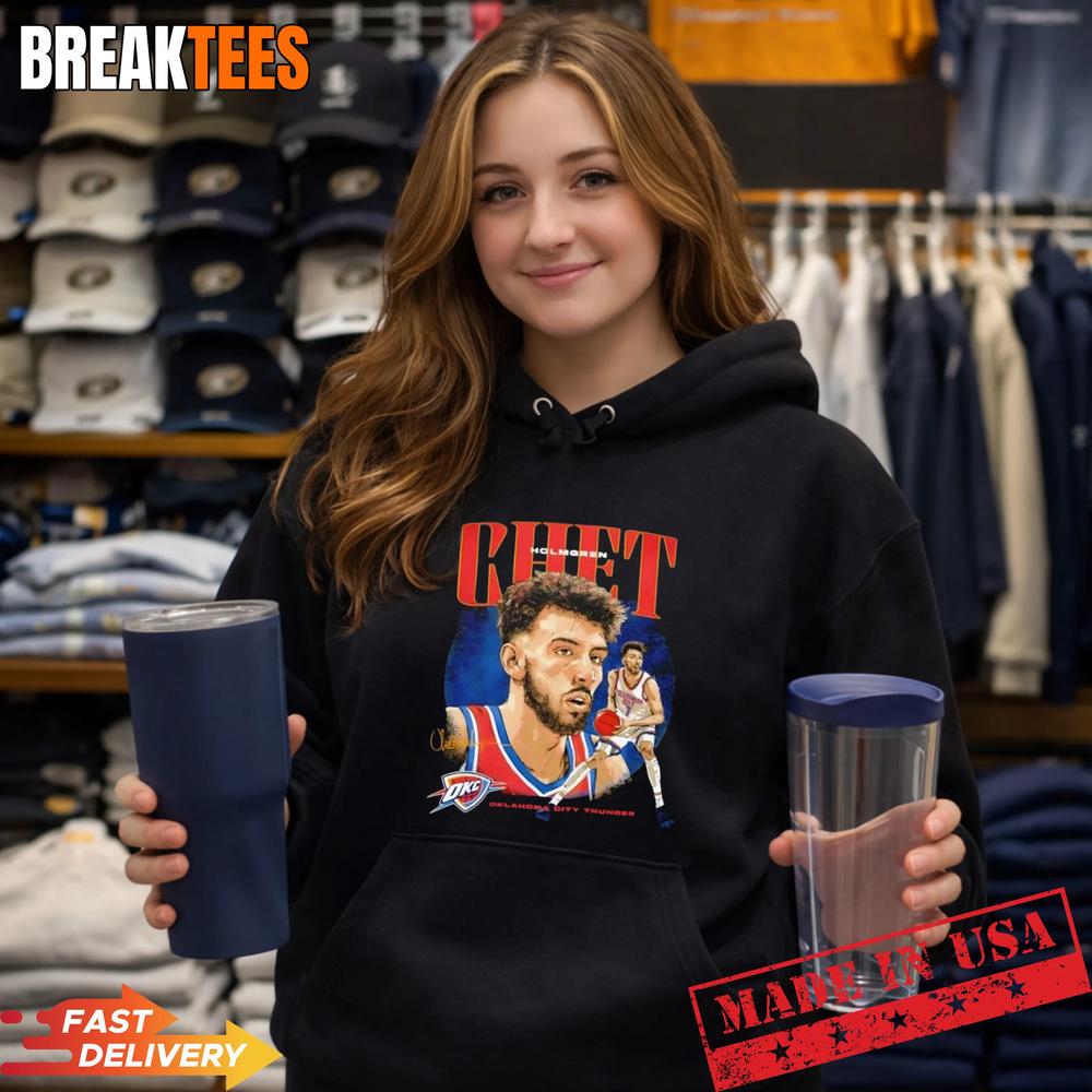 This shirt is ideal for die-hard Oklahoma City Thunder supporters and anyone who follows the electrifying play of Chet Holmgren. If you live and breathe basketball, this shirt resonates with your passion and loyalty to the team.