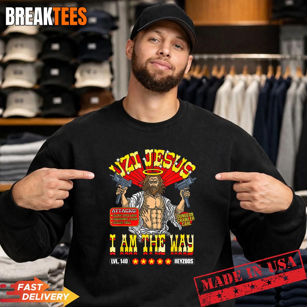 The DCC Uzi Jesus I Am The Way Character Stats RPG Books Shirt is tailor-made for those who live and breathe RPGs, memes, and everything in between. Whether you’re a seasoned gamer or just starting your journey in the world of tabletop adventures, this shirt speaks to your identity as a fan. It’s ideal for conventions, gaming nights, or just lounging around with friends who understand the humor behind it.