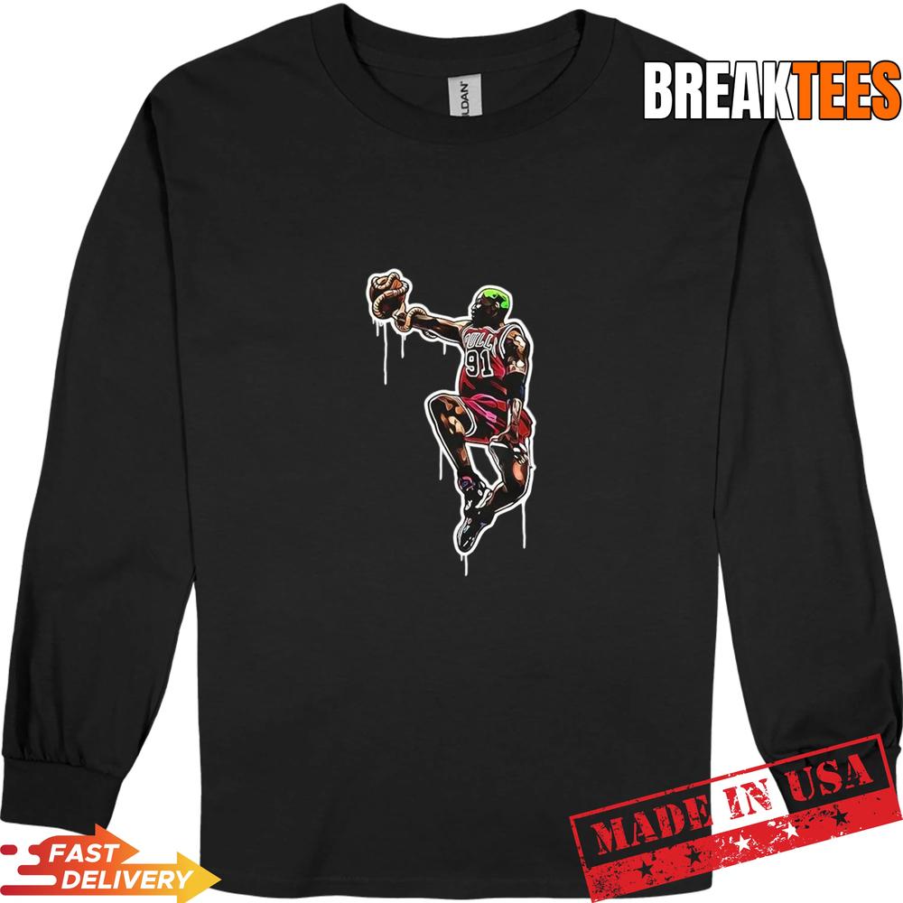 The Dennis Rodman Chicago Bulls NBA The Worm graffiti T-Shirt is a must-have for any basketball aficionado. With its eye-catching design and quality construction, it’s bound to become a favorite in your wardrobe. Grab yours before they sell out and wear it proudly as you support your team and celebrate the legacy of one of the sport’s greatest figures. BreakTees is here to deliver the best in fan apparel, so don’t wait!