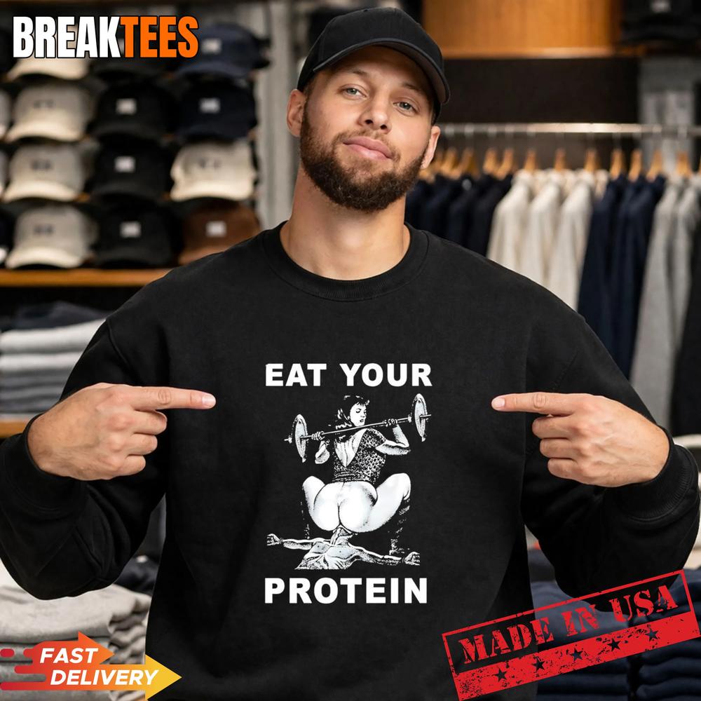 Grab your Eat You Protein For Gym-Goers Vintage T-Shirt today! As a piece that resonates with fitness lovers and humorists alike, it won’t last long. Show off your gym pride and connect with fellow enthusiasts while representing your favorite workout mantra. Shop now at BreakTees and add this gem to your collection!