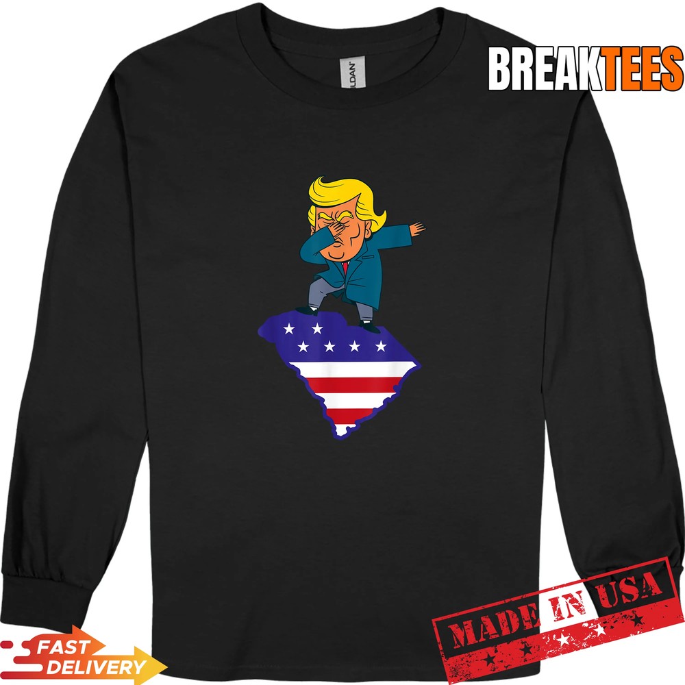 This shirt speaks to those who enjoy blending humor with political commentary. If you love engaging in discussions about current events or just want to lighten the mood with a touch of satire, this Funny Dabbing Donald Trump US Election South Carolina Map T-Shirt is for you. It’s perfect for rallies, casual hangouts, or simply making a statement at your next gathering.