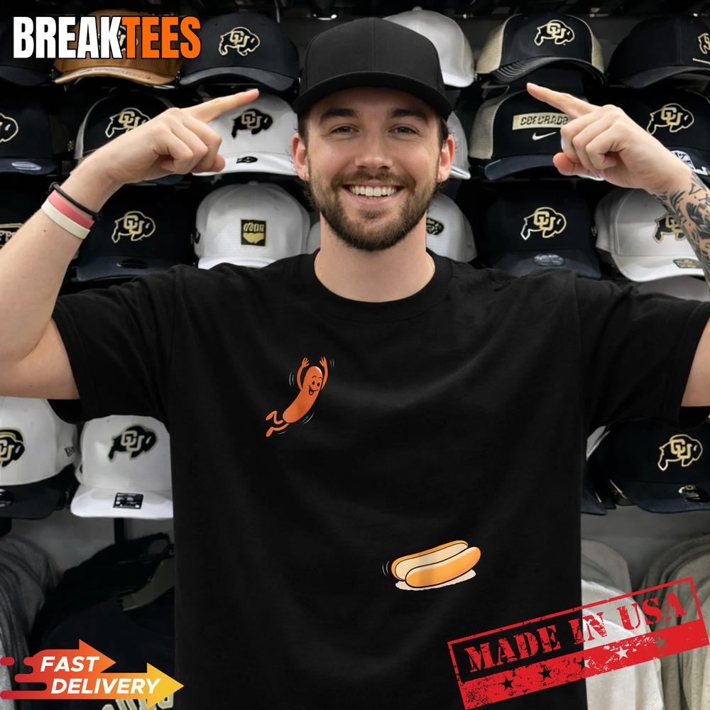 This Funny Hot Dog Jumping Into Bun Sausage BBQ High Dive T-Shirt is more than just a shirt; it’s a statement of humor and a nod to one of the internet’s beloved memes. Grab yours today and join the ranks of those who appreciate a good laugh! Supplies are limited, so act fast and add this hilarious tee to your cart now at BreakTees!