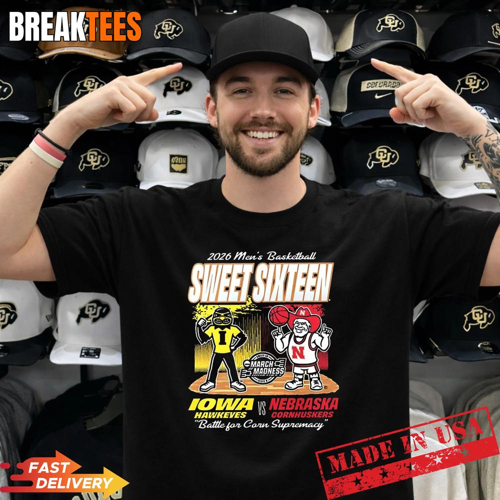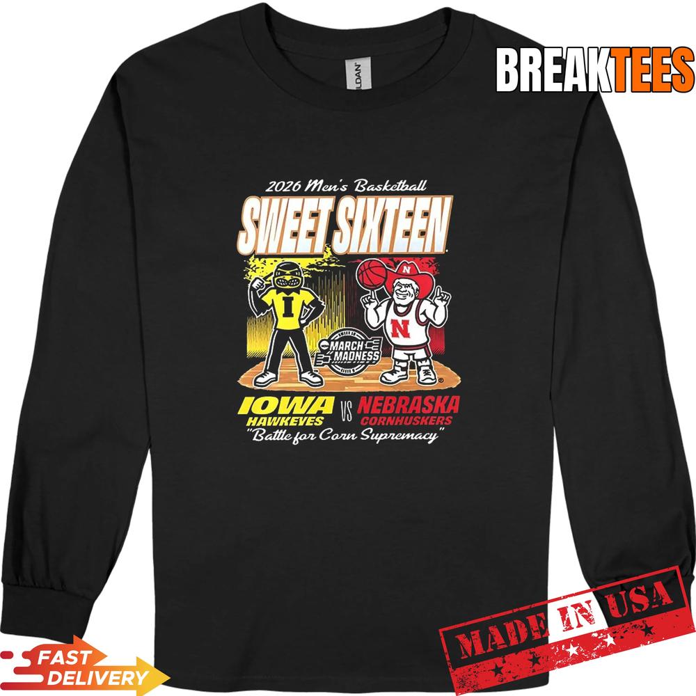 Iowa Hawkeyes vs Nebraska Cornhuskers 2026 Men’s Basketball Sweet Sixteen Shirt