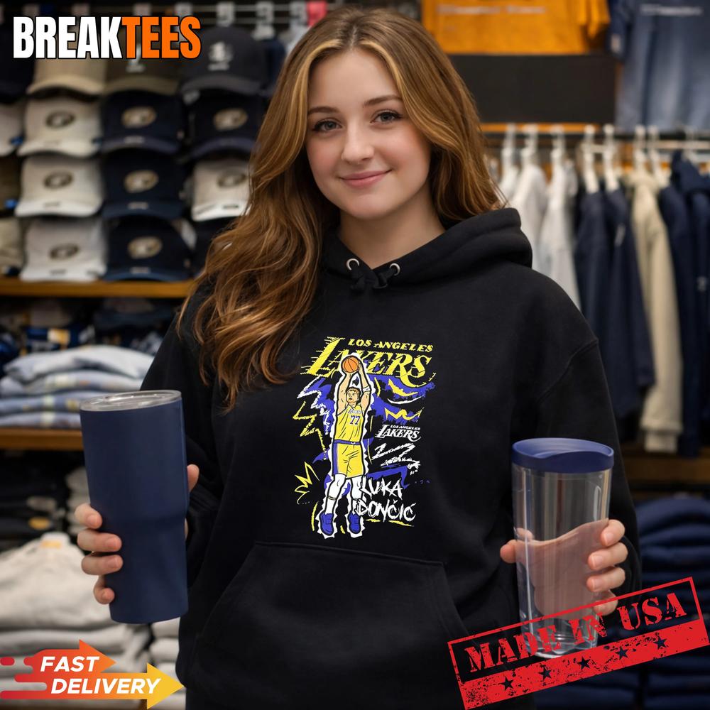 As you wear this shirt, you’ll not only show support for Doncic but also connect with the electrifying atmosphere of Lakers fandom, a community with deep roots in basketball history. It’s a clear nod to what makes the Lakers iconic, making it a must-have for anyone who appreciates the artistry of the game. For more about this incredible player, check out Luka Doncic’s NBA career.