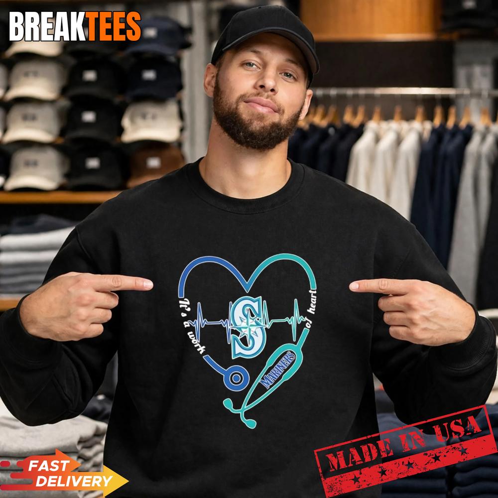 Don’t wait for the bottom of the ninth to make your move. This Stethoscope Heart Heartbeat It’s A Work Of Heart Seattle Mariners Baseball Logo T-Shirt is a limited-run design for the true PNW faithful. Join the ranks of healthcare heroes who wear their hearts on their sleeves—literally. Shop now at BreakTees and show the world that caring for others and cheering for the Mariners is truly a work of heart. Stocks are moving fast, so grab yours today and be ready for the next first pitch!