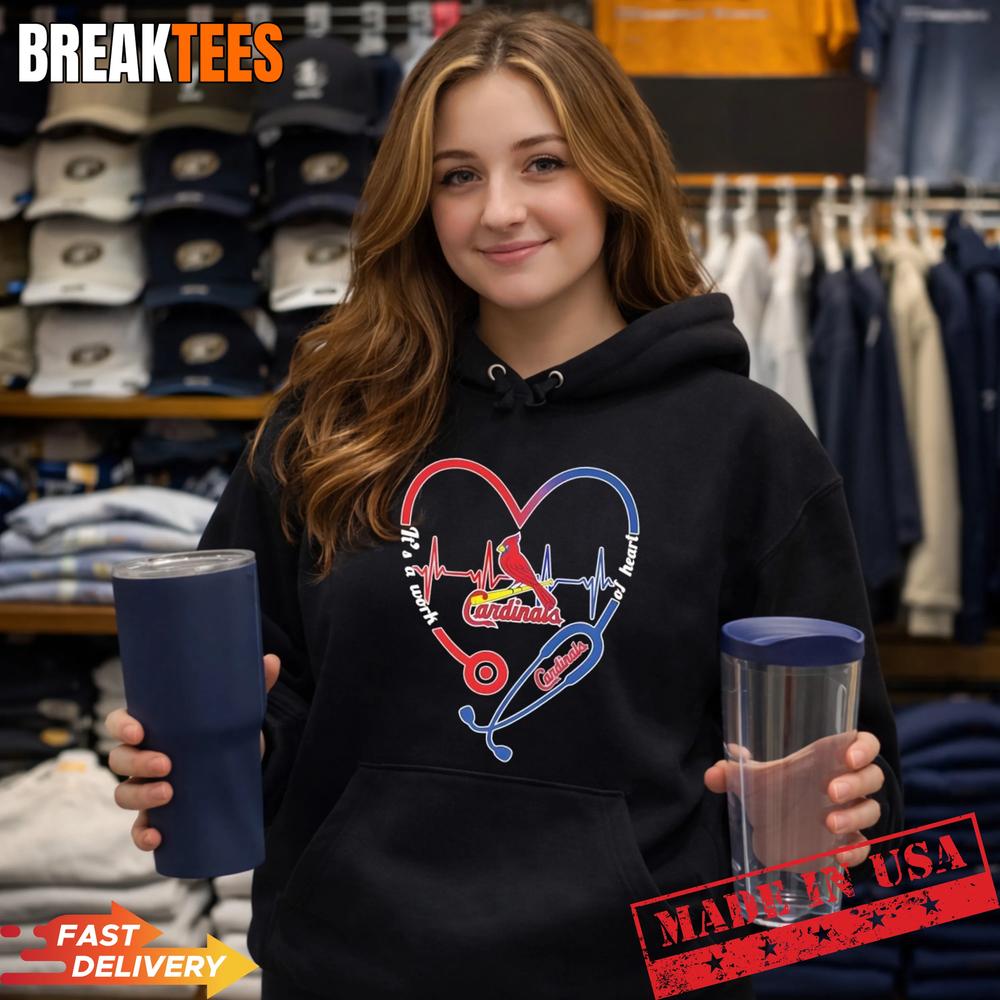 The Stethoscope Heart Heartbeat It’s A Work Of Heart St Louis Cardinals Baseball Logo T-Shirt is more than just a piece of apparel; it is a tribute to the passionate fans who balance a life of service in healthcare with an unwavering love for the game. Whether you are coming off a long shift at the hospital or heading to Busch Stadium, this shirt bridges the gap between your profession and your passion. At BreakTees, we understand that being a fan is a lifelong commitment, much like the dedication required in the medical field.