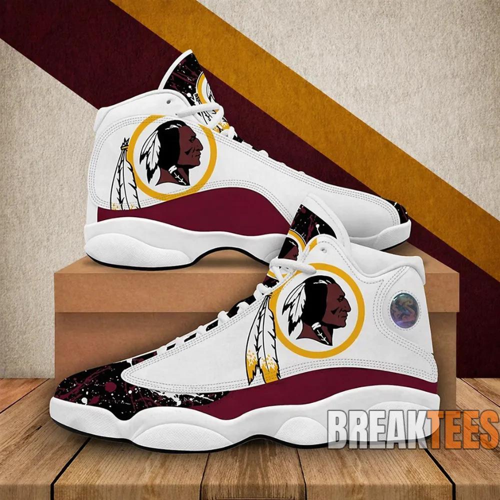 Don’t miss out on owning the Washington Redskins NFL White Brown Logo Air Jordan 13 Shoes! As a true fan, you know the importance of representing your team in style. With limited availability, these shoes are a must-have for anyone looking to elevate their game day experience. Get yours today at BreakTees and show off your team pride!